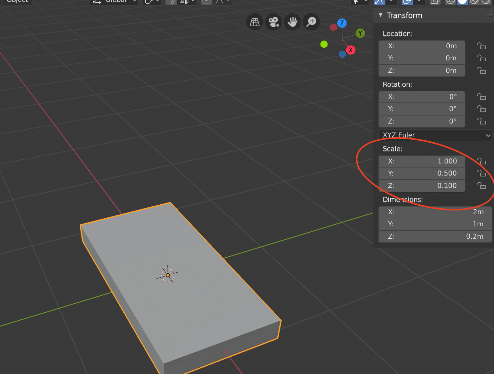 Notice how the scale properties have been reset to 1 and the object remains its shape: