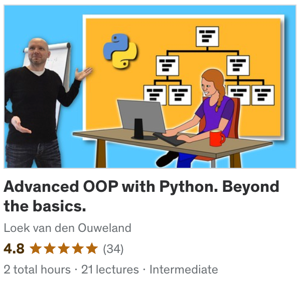 I offer a variety of online Python courses where I teach beginners how to create their first programs and help professionals how to understand Python better.